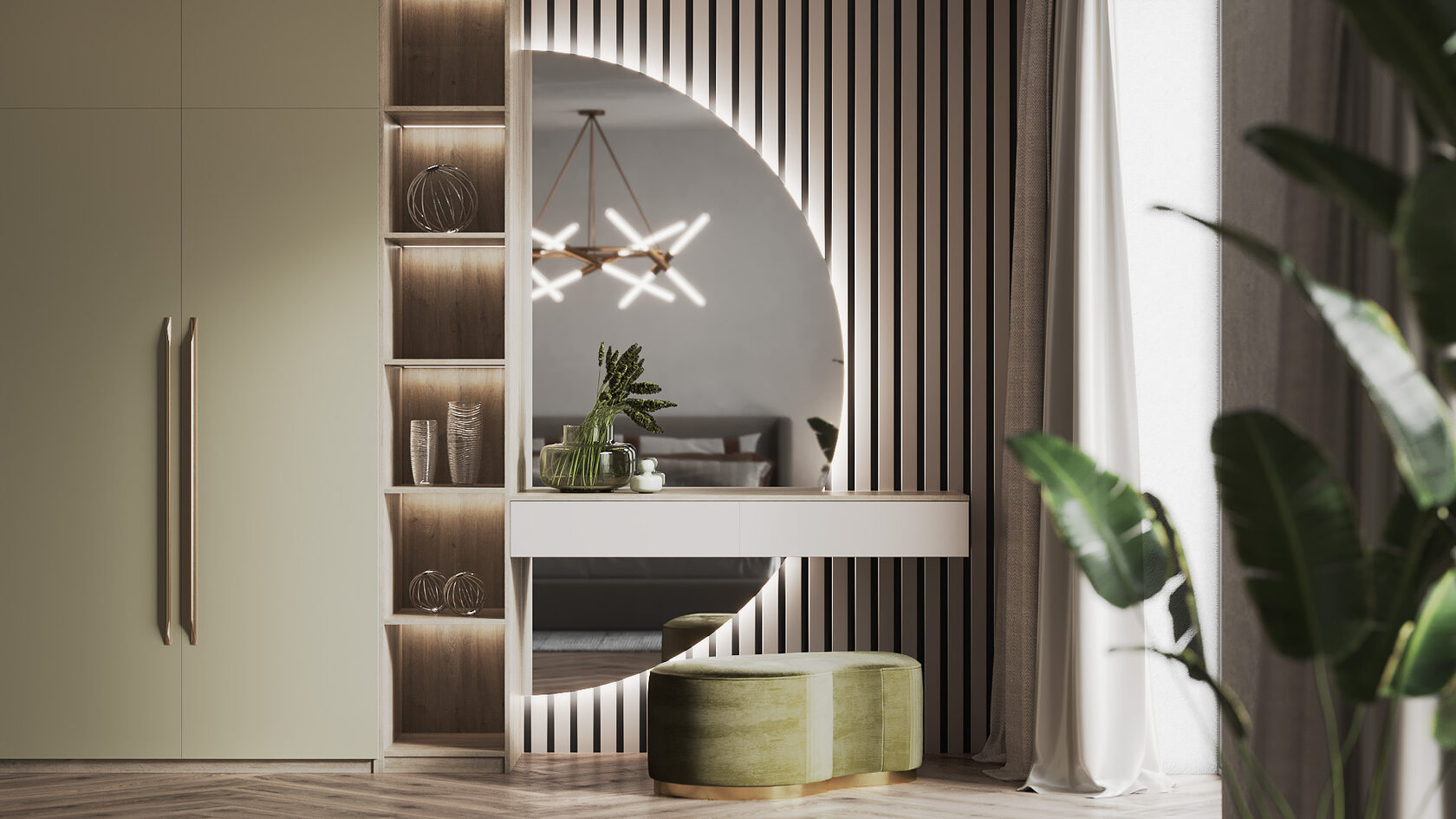 6. Спальня: Рейки Кашемир + туалетный столик = Воздушная элегантность