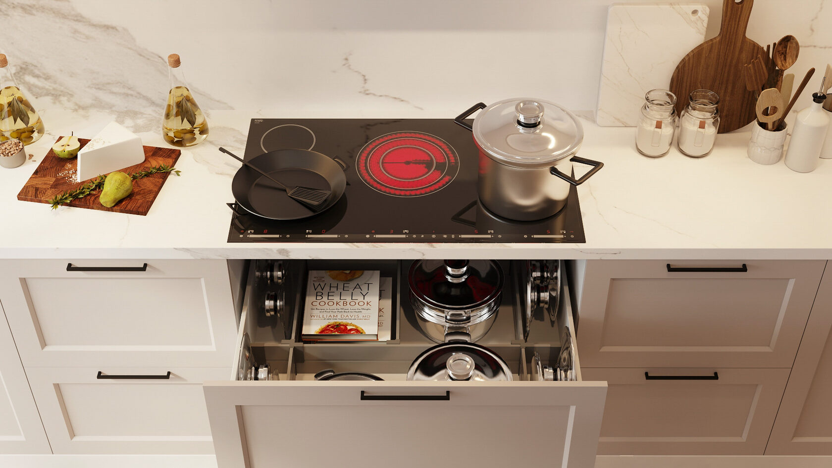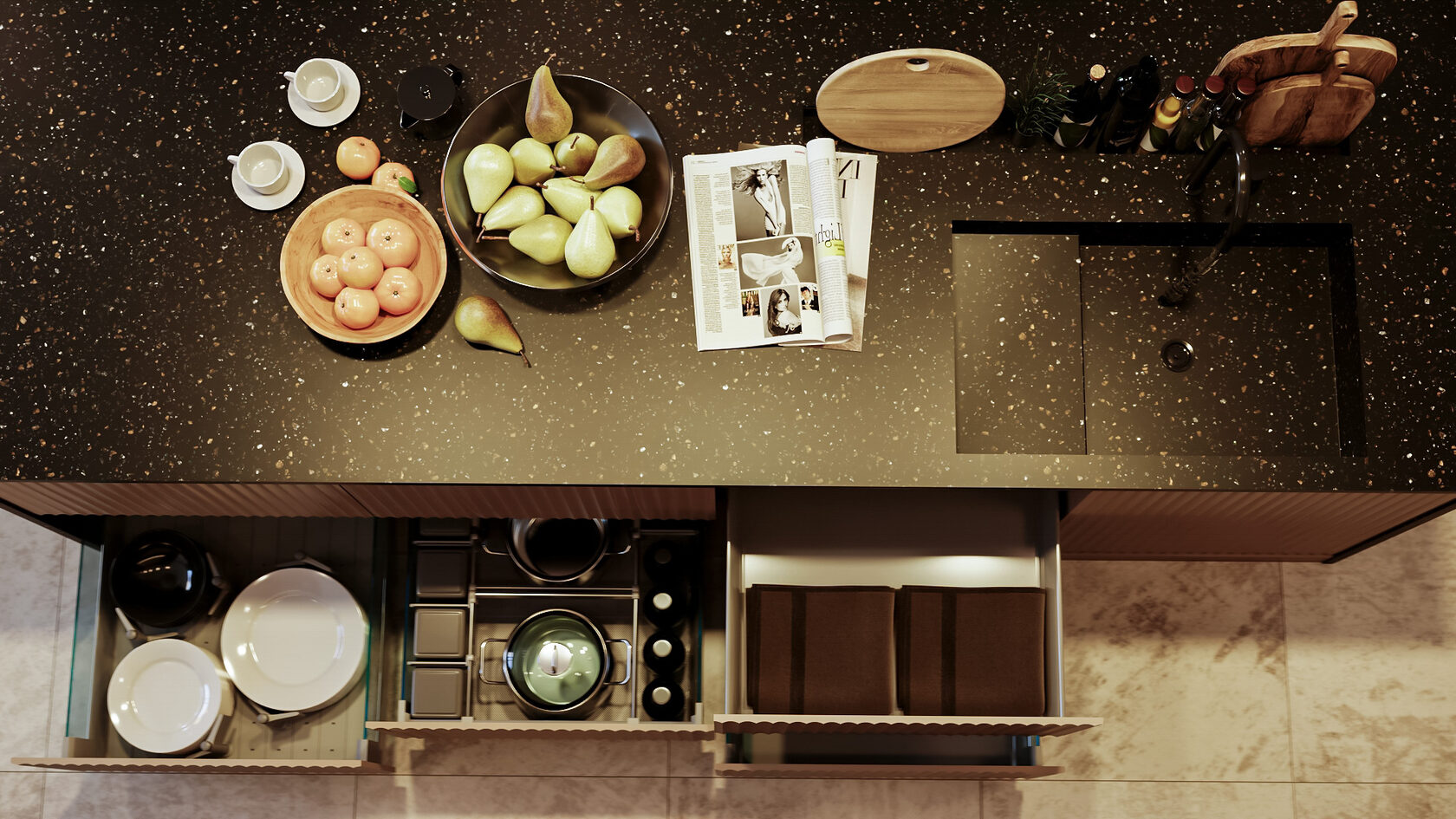 Интеллектуальные решения. Встроенная подсветка, скрытые ручки, сенсорные системы открывания и тихие механизмы — всё ради удобства и эстетики.