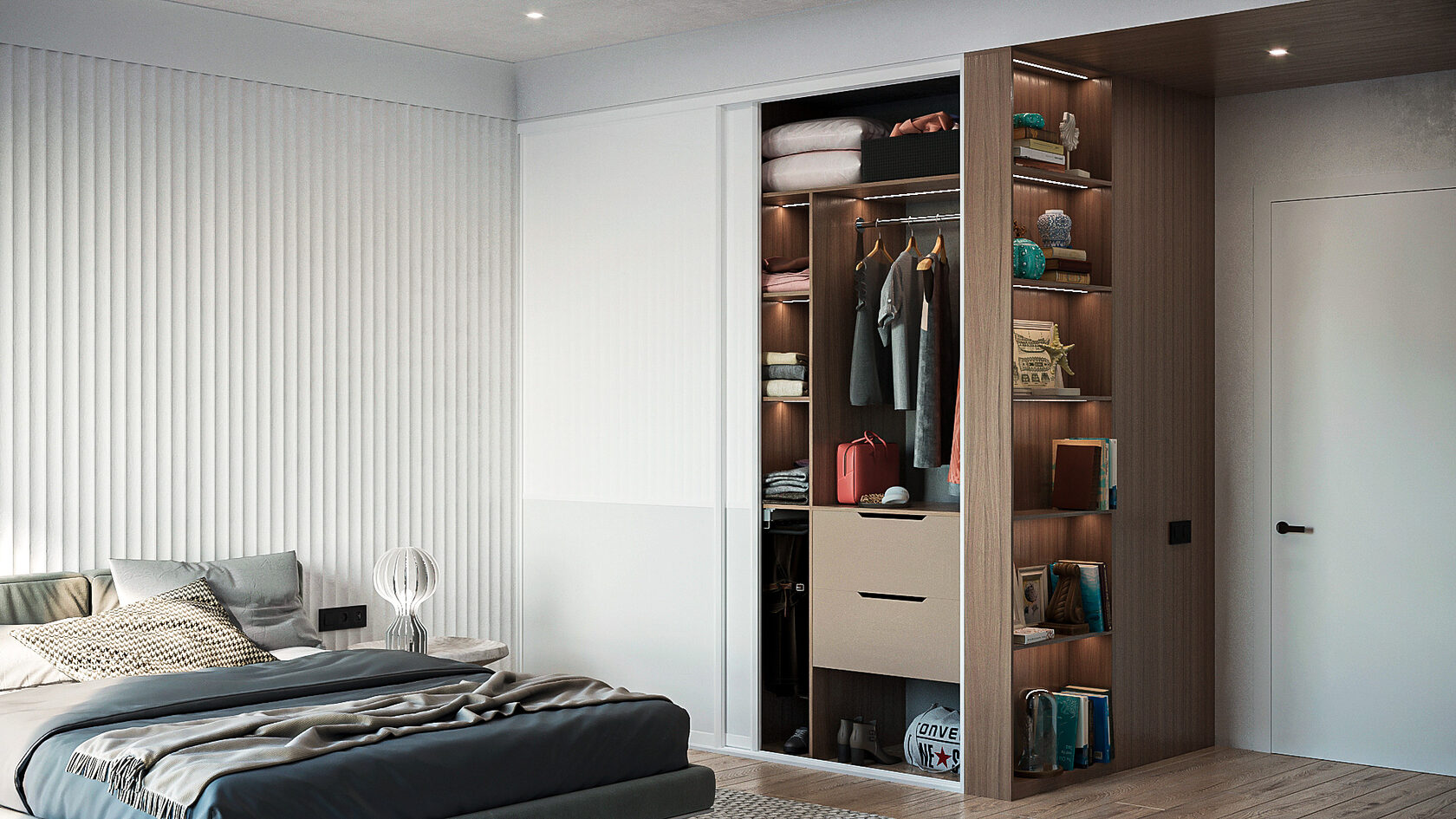 11. Шкаф-купе со стеллажом: зонирование пространства