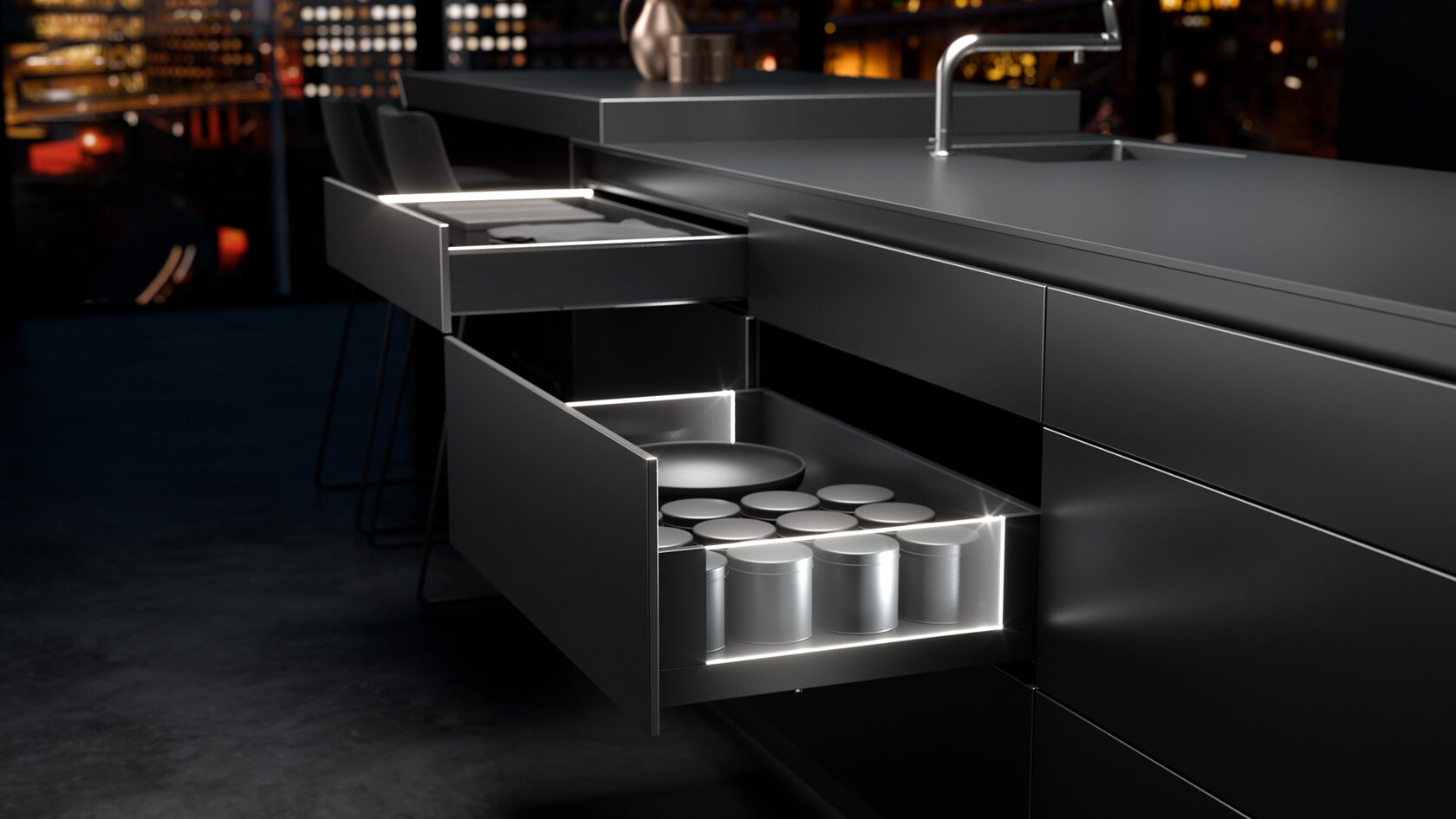 AvanTech YOU - ультратонкие ящики с невидимым крепежом и награжденной подсветкой. Возможность комбинировать сменные профили и вставки из стекла, дерева или камня. InnoTech Atira предлагает цветовые решения и модульную организацию с нагрузкой до 50 кг. Обе системы используют унифицированные крепления и механизмы Push-to-Open, сочетая дизайн с экономичностью производства.