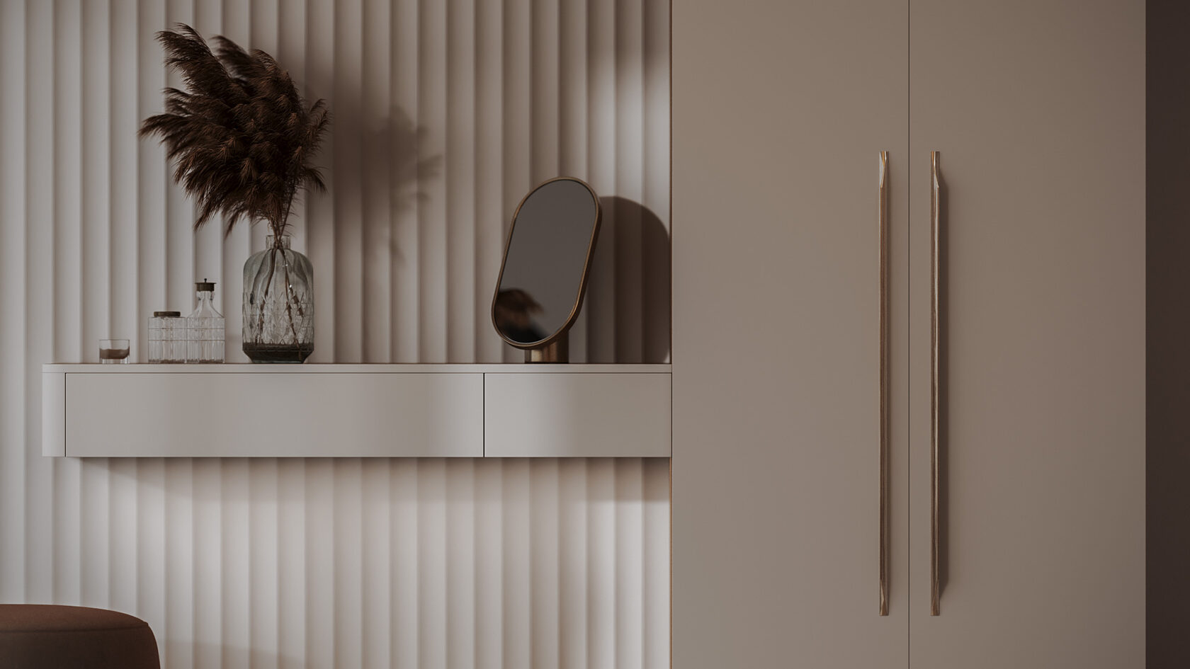 Совет: выберите фасад в цвет стен, чтобы шкаф визуально «растворился» и сделал комнату просторнее или стекло, если нужно добавить глубину в атмосферу.